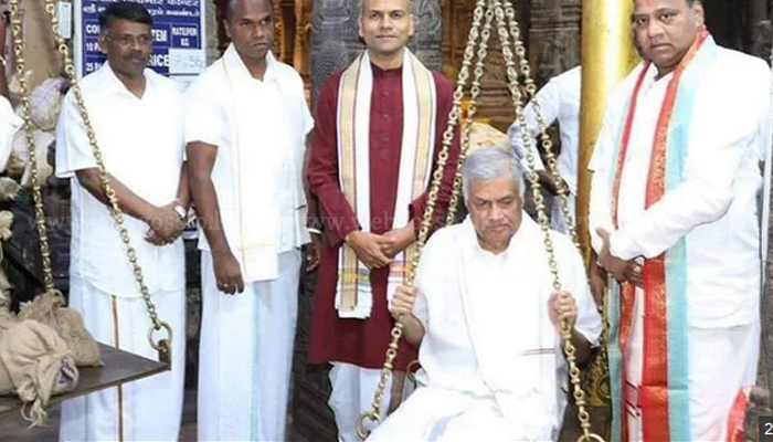පසුගියදා ඉන්දියාවේ පුද්ගලික සංචාරයක නිරත වූ අගමැති රනිල් වික්රමසිංහ මහතා එරට තිරුපති කෝවිලේ ‘තුලාබරම්’ පූජාවේ යෙදෙන අයුරු ඉන්දීය මාධ්ය විසින් වාර්තා කර තිබුණා.