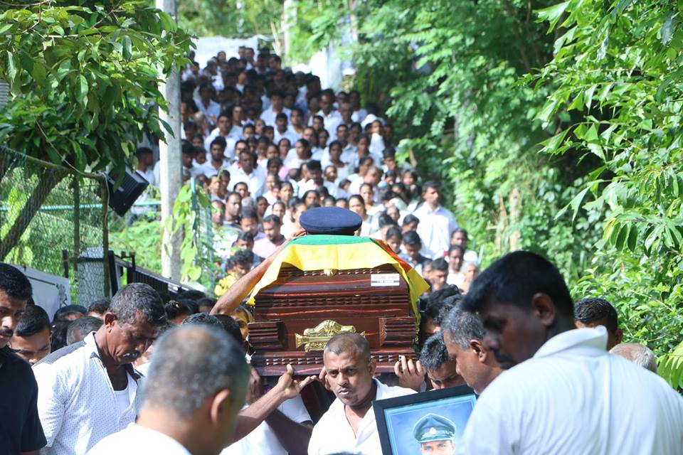 මාතර ස්වර්ණාභරණ අලෙවිසල කොල්ලකෑමේ සිද්ධියේදී දිවි පිදූ පොලිස් සැරයන් සුරංග ප්‍රදීප් වීරසිංහ මහතාගේ දේහය පිළිබඳ අවසන් කටයුතු ඊයේ සිදුකෙරුණා.