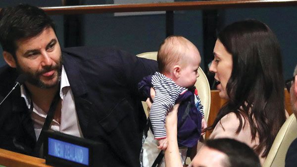 ඇය නවසීලන්ත අගමැතිනියයි.. ඇය මීට පෙරද ලෝකයේ වැඩි දෙනෙකුගේ කතාබහට ලක්වුණු දේශපාලඥවරියක්ද වුණා. ඇය ප්රසූත නිවාඩු ලබා සිටින අවස්ථාවක එක්සත් ජාතීන්ගේ සංවිධානය විසින් පවත්වන ලද ලෝක නායක හමුවක දේශනයක් සඳහා සහභාගී වීමට සිදුවුණා. එම අවස්ථාවට මාස දෙක හමාරක් වයසැති බිළිඳියද සමඟ ඇය එක්වී සිටියේ මෙලෙසින්.