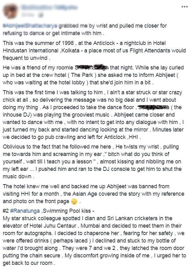 මේ දිනවල ඉන්දියාවේ සමාජ මාධ්ය තුළ කාන්තා හිංසනය සම්බන්ධ හෙළිදරව් කිරීම් සිදුවන රැල්ලක් බිහිව පවතින අතර Me Too movement නමැති ඒ ඔස්සේ විවිධ කාන්තාවන් තමන් ජීවිතයේ මුහුණ පෑ කටුක අත්දැකීම් සටහන් තබා හුවමාරු කරගනිමින් පවතිනවා. මෙම රැල්ලට අනුව යමින්