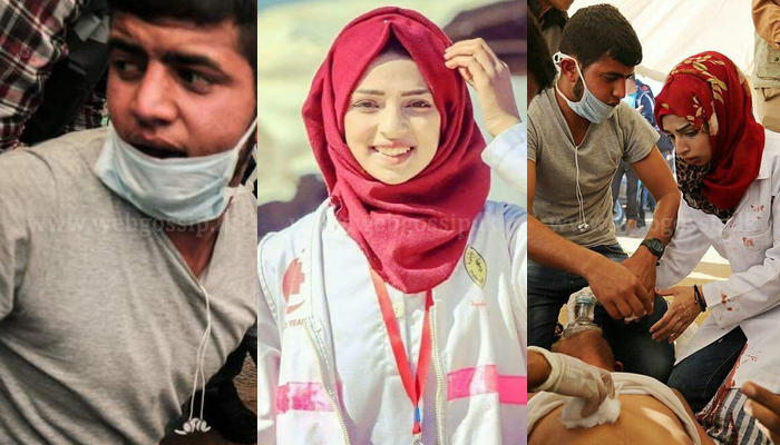 පලස්තීන විරෝධතාකරුවන් සහ ඊශ්රායල හමුදා සොල්දාදුවන් අතරේ පැවති ගැටුම් වලදී වෙඩි පහරකින් අවාසනාවන්ත ලෙස මිය ගිය සූරූපී හෙදියක් වන 21 හැවිරිදි රසාන් අල් නජාර්ගේ අවසන් කටයුතු සඳහා පලස්තීනුවන් දස දහස් ගණනක් සහභාගී වී තිබෙනවා.