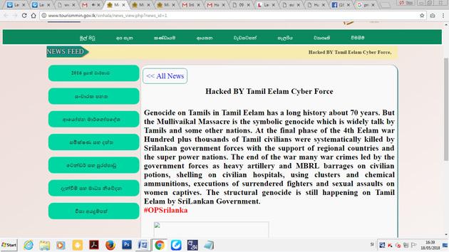 ‘දෙමළ ඊලාම් සයිබර් බළකාය‘ නමින් හඳුන්වා ගත් කණ්ඩායමක් මෙලෙස වෙබ් අඩවි වලට අනවසරයෙන් ඇතුළු වී ඇතැයි එම ආරංචි මාර්ග කියයි. සංචාරක සහ ක්රිස්තියානි කටයුතු අමාත්යංශ වෙබ් අඩවියේ අදාළ කණ්ඩායම පණිවිඩයක් ද සටහන් කර තිබේ. රජයේ ඇතැම් වෙබ් අඩවි වලට පිවිසීමට නොහැකි වී ඇති අතර ඊට හේතුව කිසියම් පිරිසක් අනවසරයෙන් ඇතුළු වීමදැයි නොදන්නා බව රජයේ ප්රකාශකයෙක් පැවසීය.