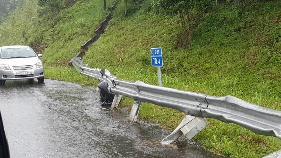 ඒ රථය පාලනය කර ගැනීමට නොහැකිව මාර්ගයේ ආරක්ෂිත වැටෙහි ගැටීමෙනුයි.