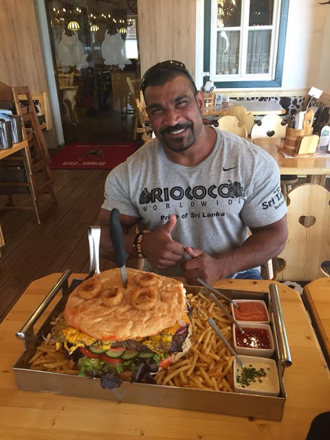 ඒ කිලෝග්රෑම් 3 ක් බර විශාල බර්ගර් එකක් විනාඩි 30 කින් සම්පූර්ණයෙන්ම කලා තිබ්බා.