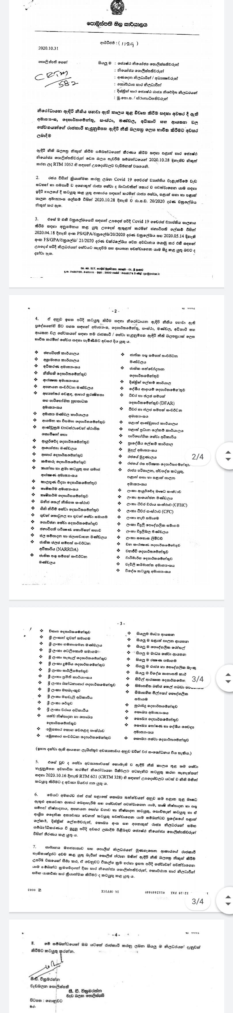 නිරෝධායන ඇඳිරි නීතිය පනවා ඇති ප්රදේශවල සිට සිය සේවා ස්ථාන කරා ගමන් කිරීමේදී ඇඳිරි නීති බලපත්ර ලෙස සිය සේවා හැඳුනුම්පත භාවිතා කළ හැකි රාජ්ය ආයතන ඇතුළු ආයතන 80 කට අධික සංඛ්යාවක් සම්බන්ධයෙන් වැඩබලන පොලිස්පතිවරයා විසින් සියලුම පොලිස් ස්ථාන වෙත අද දැනුම් දී තිබෙනවා.