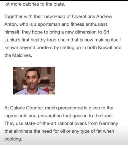 එය ‘Calorie Counter by Duaine Peiris’ නමින් ප්රසිද්ධ ආපනශාලාවයි.