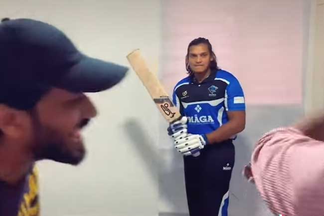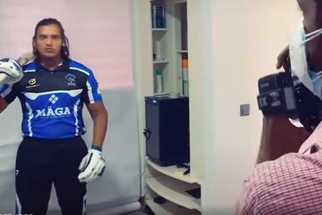 ඔහු ක්රිකට් ක්රීඩකයෙකු ලෙස සැරසී ඡායාරූප ගැනීමේ අවස්ථාවක් එලෙස අසල සිටි පුද්ගලයෙකු විසින් වීඩියෝ කර තිබෙනවා.