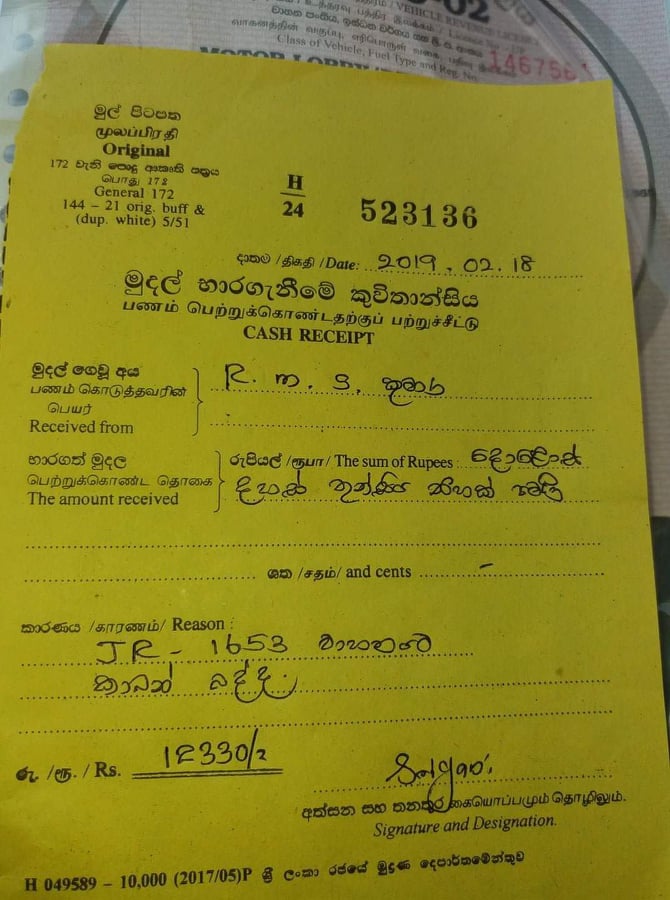 ආර්.එම්.එස්. කුමාර කියන මේ පුද්ගලයාට කාබන් බද්ධ විදිහට රුපියල් දොළොස්දහස් තුන්සිය තිහක බද්දක් ඔහුට ගසා තිබුණා.