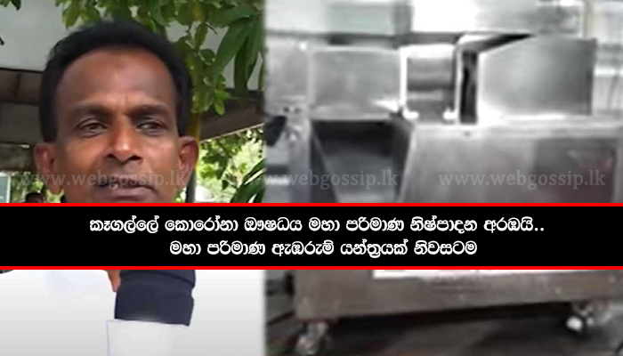 කොරෝනා වෛරසය මර්දනය සදහා දේශීය ඖෂධය නිෂ්පාදනය කරන ලද කෑගල්ලේ ධම්මික බණ්ඩාර මහතාට එම නිෂ්පාන කටයුතු සදහා මහා පරිමාණ ඇඹරුම් යන්ත්රයක් කර්මාන්ත අමාත්යශංය විසින් ලබා දී තිබේ.