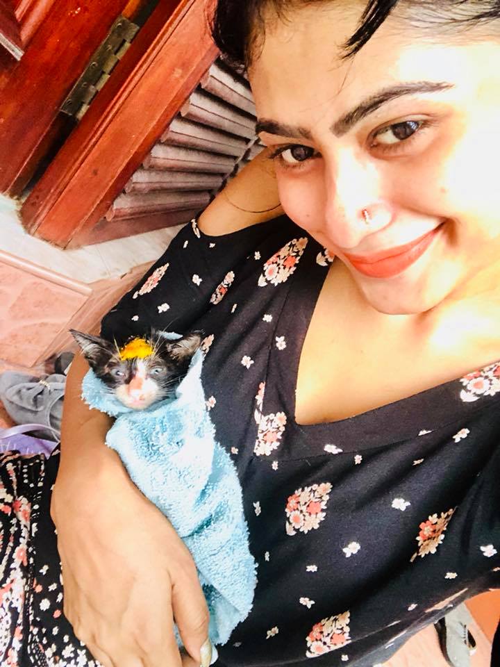 ඒ පියුමි පසුගිය දවසක පූස් පැටියෙක් ගෙදර අරන් ගිහින් බෙහෙත් දාලා කවලා පොවලා බලාගත්ත කතාවක්.