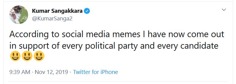 කොහොම වුණත් මේ ගැන නිහඬ පිළිවෙතක් අනුගමනය කළ සංගා සිය ට්විටර් ගිණුමේ සටහනක් තබා තිබුණා.