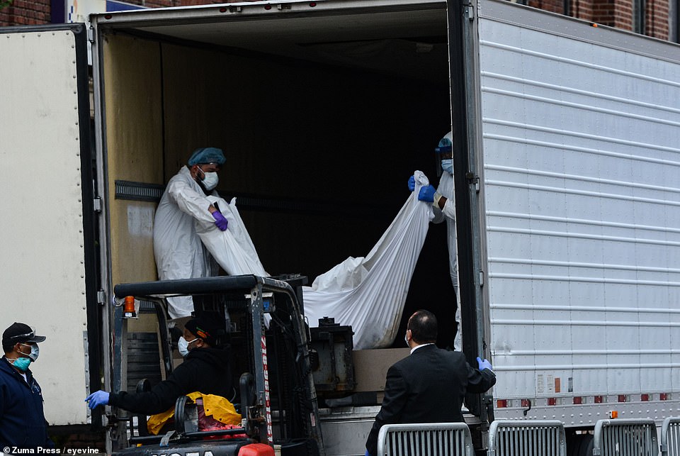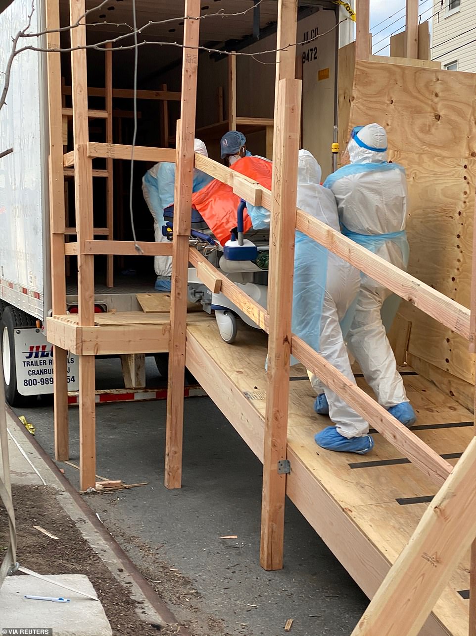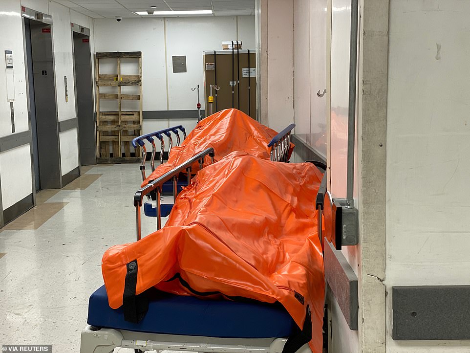 තවද තාවකාලික මෘත ශරීරාගාර විදිහට ක්රියා කරන හිස් ශීතරකරණ සහිත ට්රේලර් රෝහල්වලින් පිටතද සවිකර ඇති අයුරු එම ඡායාරූපවල දැක්වෙනවා.
