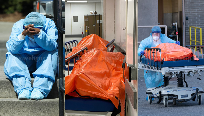 ඒ විදිහට කොරෝනා ලොවම බිලිගනිමින් ඉද්දි නිව්යෝක්හි රෝහල් ශාලාවක බිම තබා ඇති “බොඩි ” (ශරීර බහාලන බෑග්) කිහිපයක ඡායාරූප පෙලක් අන්තර්ජාලය පුරා හුවමාරු වෙමින් තිබෙනවා.
