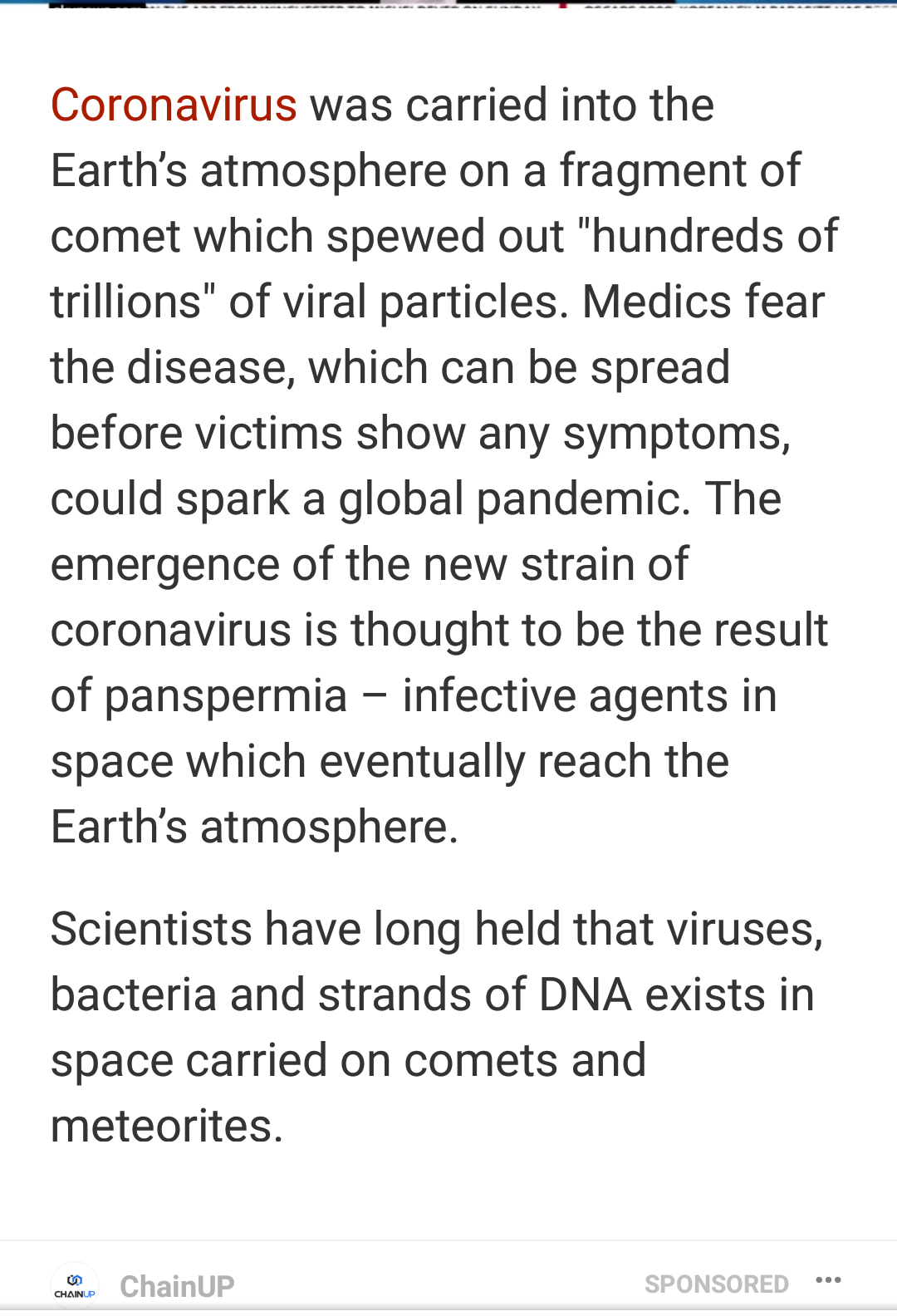 ගෝලීය වශයෙන් විශාල පිරිසක් මරණයට පත් කළ මෙම මාරාන්තික කොරෝනා වෛරසය පසුගිය වසරේ උල්කාපාතයකින් පැමිණි බවයි එහි සඳහන් වන්නේ.