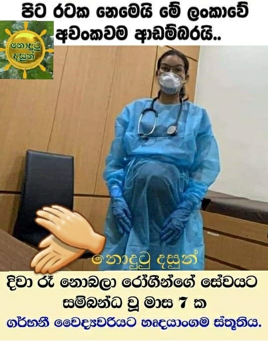 පිටරටක නෙවෙයි මේ ලංකාවේ, දිවා රෑ නොබලා රෝගීන්ගේ සේවයට සම්බන්ධවූ ගර්භනී වෛද්යවරියක් ලෙසයි.