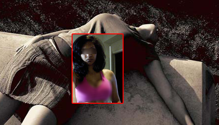 එය… මඤ්ඤොක්කා වගාවකින් යුතු ගොඩකුඹුරකි. අත් දිග කමිසයක් හැඳ ඊට උඩින් ටී ෂර්ටයක් ද දිග සායක් ද හැඳ සිටි ඇයගේ ගෙල ප්රදේශයේ ගැඹුරු කැපුම් තුවාල දිස්විය. එය වම් කණේ සිට උගුරු දණ්ඩ තෙක් ගැඹුරට කැපී ඇත. දකුණු ඇසට උඩින් හිසේ ද කැපුම් තුවාලයකි.