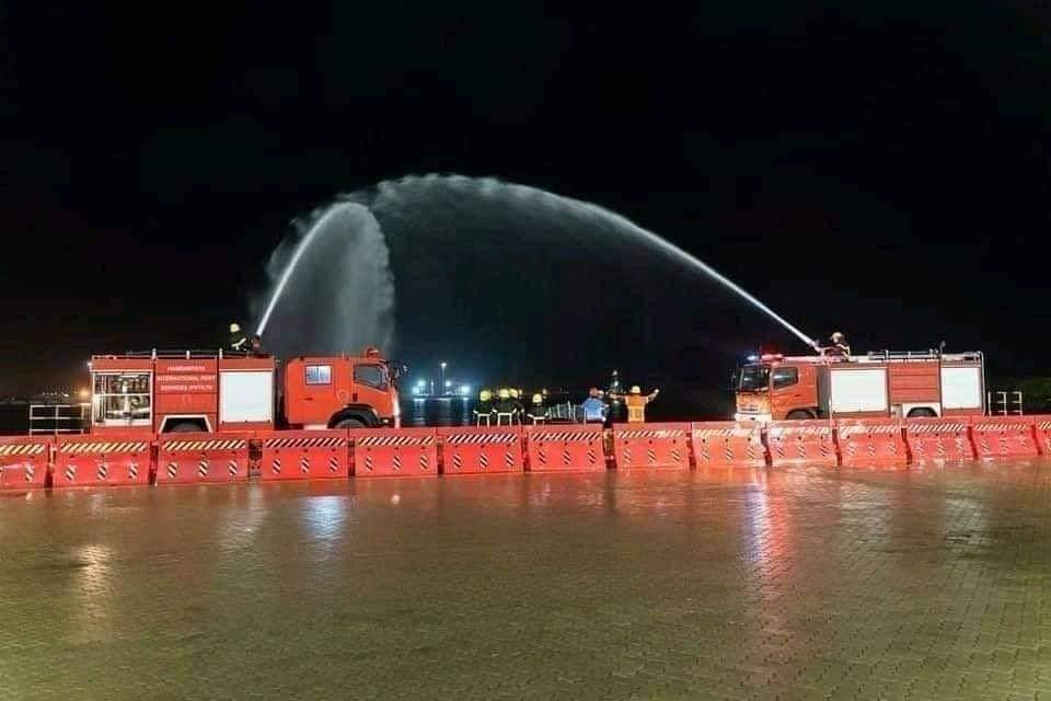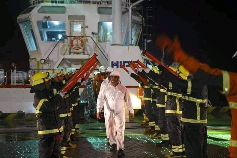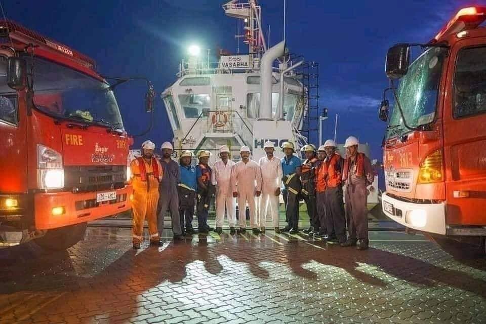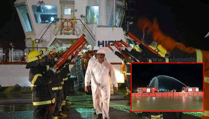 බ්ලූ ඩයමන්ඩ් නැවේ ගින්න නිවපු නිළධාරීන් කීපදෙනා හම්බන්තොට වරායේදී පිළිගත් ඡායාරූප කිහිපයක් අපිට ලැබුණා.