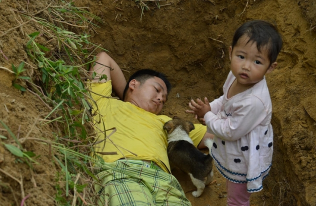 තම වේදනාව දරා ගැනීමට නොහැකිව මෙම පියා සොහොනක් තනාගෙන තම දියණියත් සමඟ මරණය ළඟාවනතෙක් බලා සිටිනවා.