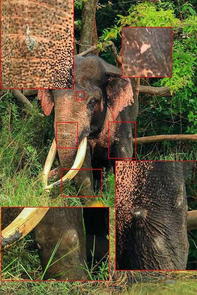 මින් පෙර අවස්ථාවකදී මේ දළ ඇතාට වෙඩික්කරුවන් විසින් වෙඩි තබා තිබූ අාකාරයයි මේ.
