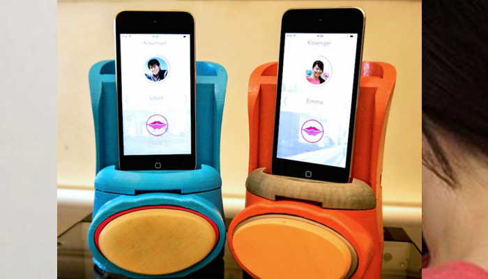‘කිසෙන්ජර්‘ කියන උපකරණය ජංගම දුරකතනයකට සවි කර ගත්තට පස්සේ ඒ මත දෙතොල් තබමින් හාදු දෙන්න පිලිවන් කියලා සැන් කියනවා.