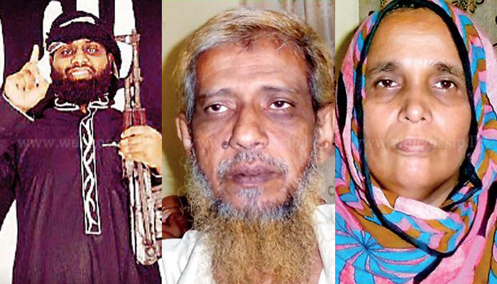 ඉරිදා (28) බුද්ධි අංශයේ නිලධාරින් ඇවිත් ඡායාරූප වගයක් පෙන්නුවා. ඒ මගේ දියණියත් මුනුපුරාත් මිනිිපිරියත් බව මම හඳුනා ගත්තා. ඔවුන් බෝම්බයක් පුපුරවා ගත් බව නිලධාරීන් දැන්නුවා. පසුගිය දිනවල ඇතිවුණ බෝම්බ පිපිරවීමකින් සහ්රාන් මිය ගොස් තිබුණා. බුද්ධි අංශයේ නිලධාරීන් මට බෑනාගේ ඡුායාරූප පෙන්වලා ඇහුවා හඳුනනවාද කියලා. මියගොස් ඇත්තේ මගේ බෑනා වන සහ්රාන් බව මම හඳුනා ගත්තා යනුවෙන් ෆාතිමා සාදියාග් පියා වන මොහොමඩ් හුසේන් අබ්දුල් කාදර් මහතා සඳහන් කළා.