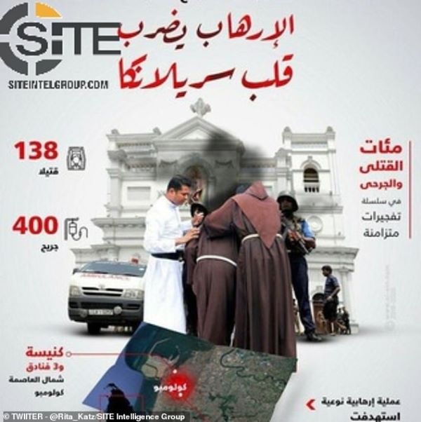මෙරට දේවස්ථාන සහ හෝටල් ඉලක්ක කරගෙන සිදුවූ ත්‍රස්ත ප්‍රහාර අයි.එස්. සංවිධානය විසින් සමරා ඇති බව බ්‍රිතාන්‍යයේ ඩේලි මේල් පුවත්පත සඳහන් කර තිබෙනවා.