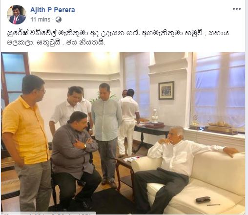 ඔහු හිටපු අගමැති රනිල් වික්‍රමසිංහට සහය පලකළ බවට සඳහන් කරමින් අජිත් පී පෙරේරා මන්ත්‍රීවරයා සිය මුහුණුපොතේ සටහනක්ද තබා තිබුණා.