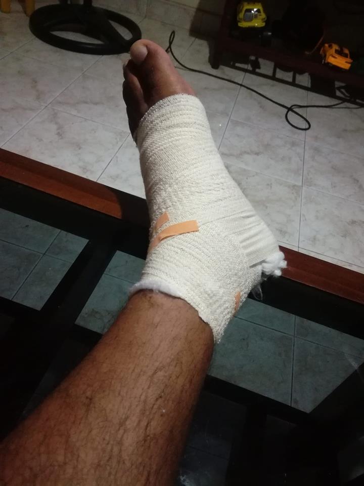 විශ්ව වැටිලා කකුල තුවාල වෙලා.