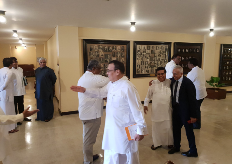 පාර්ලිමේන්තුව ආරම්භ වෙන්න කළින් පක්ෂ විපක්ෂ මන්ත්‍රීවරුන් හමුවුණේ මෙහෙමයි