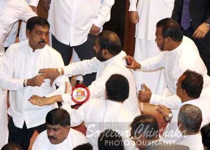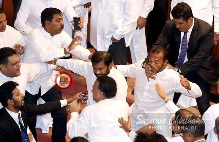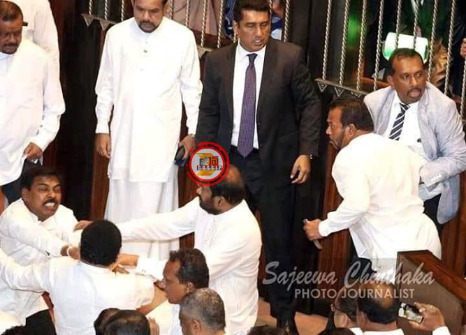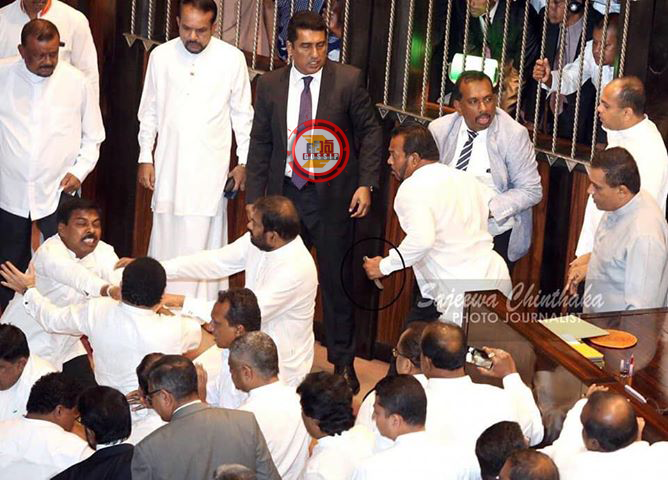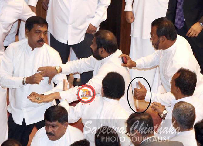 ඔහුගේ ප්රහාරයෙන් වැළකීමට ඇතැම් මන්ත්රීවරුන් විවිධ ආකාරයේ උත්සහයන් ගන්නා අයුරුද එම ඡායාරූපවල දක්නට ලැබෙනවා.