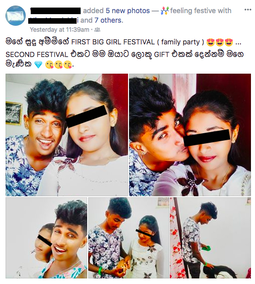 පාසල් සිසුවියකගේ වැඩිවියට පත්වීමේ අවස්ථාවේ ගන්නා ලද ඡායාරූප කිහිපයක් ෆේස්බුක් සමාජජාලා මාධ්යයන්වල ව්යාප්ත වෙමින් පවතිනවා.