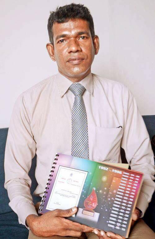 “2008 අවුරුද්දේ මම දැනගත්තෙ රුධිර පට්ටිකා දන් දීම හැම සති දෙකකට වතාවක්ම කරන්න පුළුවන් බව. එතැන් පටන් අද වෙනකල් නොවැරදීම හැම සති දෙකකට වතාවක්ම මම රුධිර පට්ටිකා දන් දෙනවා. මේ සතියේ ලේ දන් දෙන්නෙ 240 වැනි වතාවට. මහරගම අපේක්ෂා රෝහලේ සහ නාරාහේන්පිට රුධිර පාරවිලයන මධ්යස්ථනයේ වෛද්ය කාර්ය මණ්ඩලයේ අය මාව පිළිගන්නෙ හොඳ හිතවතෙක් වගේ. බී පොසිටිව් පට්ටිකා වුවමනාවක් ආපු ගමන් ඒ මහත්තුරු මට කෝල් එකක් දෙනවා. මොන වැඩේ තිබුණත් දවසේ මොන වෙලාවේ වුණත් මම එන බව එයාල දන්නවා.”