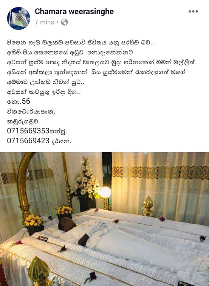ඉතින් චාමර වීරසිංහ සිය ෆේසුබුක් ගිණුම හරහා ඔහුගේ අම්මා ගැන සටහනක් යොදා තිබෙනවා.
