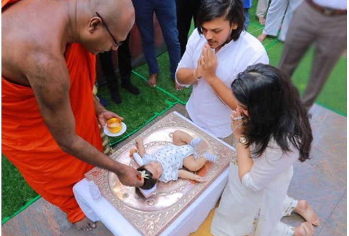 මෙතනදි ඇත්තටම වෙලා තියෙන්නේ පුංචි පුතාට ආශිර්වාද කිරීමක්..