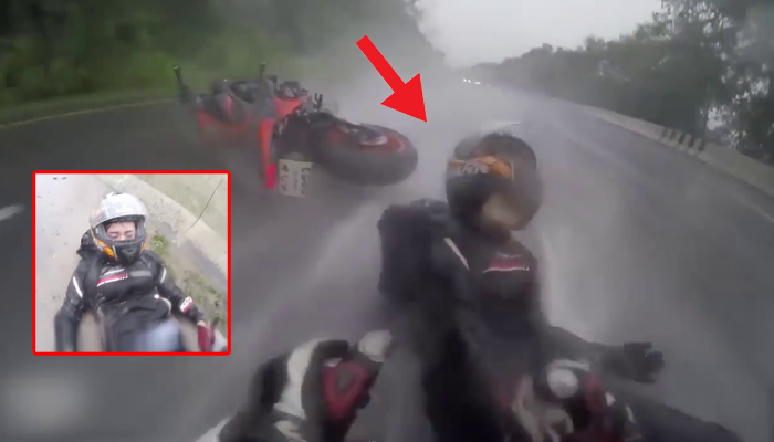 බයික් එක අනතුරට ලක්වෙද්දි තම ජීවිතය ගැන නොසලකා පෙම්වතියගේ ජීවිතය රැකගත් පෙම්වතා – වීඩියෝ