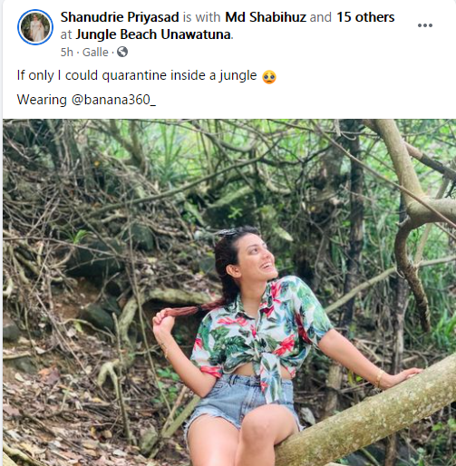 එවන් පසුබිමක ඊයේ ජනප්රිය රංගන ශිල්පිනියක් වන ශනුද්රි පියසාද් උණවටුන ප්රදේශයේ සංචාරයක නිරත වී ඇති බව ඇය සිය මුහුණුපොතේම සටහනක් තබමින් පවසා තිබුණා.