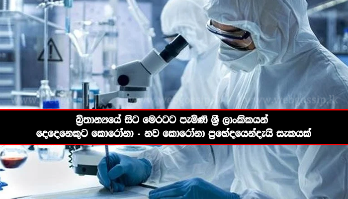 ඔවුන් දෙදෙනාට ආසාදනය වී ඇත්තේ බ්රිතාන්ය පුරා මේ දිනවල පැතිර යන කොරෝනා වෛරසයේ නව ප්රභේදයදැයි හඳුනා ගැනීමට පරීක්ෂණ කරන බව සෞඛ්ය සේවා නියෝජ්ය අධ්යක්ෂ ජනරාල් හේමන්ත හේරත් මහතා පැවසීය.