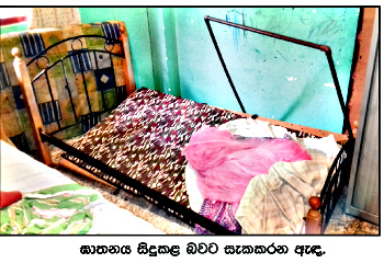 පානදුර කොට්ඨාස සහකාර පොලිස් අධිකාරී සහ අපරාධ ස්ථාන නිලධාරීන් ඊයේ (07) ඝාතනය සිදුකර ඇති කාමරය පරීක්ෂා කරන ලදී.
