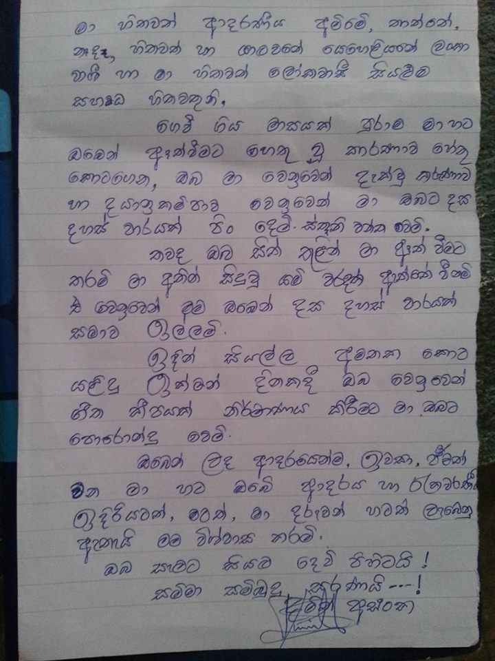 මේවන විට දමිත් අසංක සිය රසිකයන්ට පණිවිඩයක් එවා තිබෙනවා.
