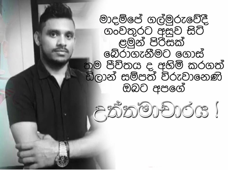 අවාසනාවන්ත විදිහට ජීවිත ගමනින් සමුගත්තේ නාරම්මල ප්‍රදේශයේ පදිංචි 29 හැවිරිදි ඩිලාන් සම්පත් නැමති පොලිස් කොස්තාපල්වරයෙක්.