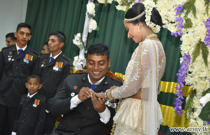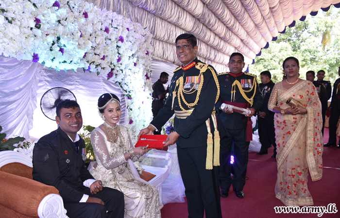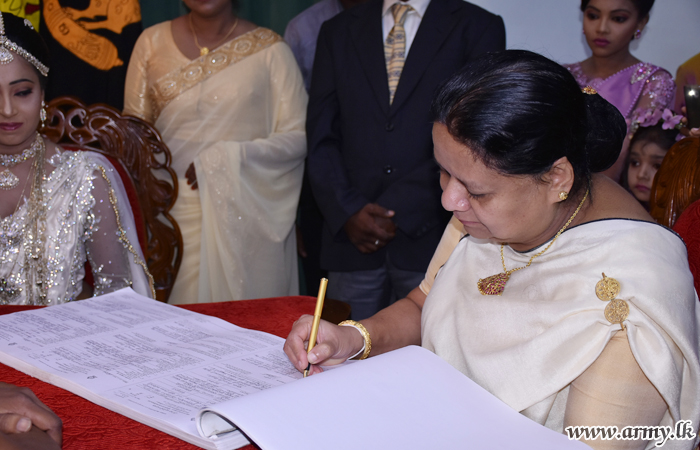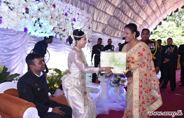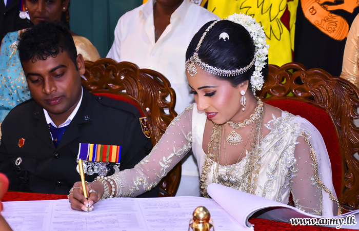 මෙම විවාහ මංගලොත්සවය ශ්රී ලංකා සිංහ රෙජිමේන්තුවේ රෙජිමේන්තු අධිපති මේජර් ජෙනරාල් පියල් වික්රමරත්නගේ උපදෙස් පරිදි ශ්රී ලංකා සිංහ රෙජිමේන්තු මධ්යස්ථානය සහ එම රෙජිමේන්තු සේවා වනිතා ඒකකය විසින් සංවිධානය කරන ලද අතර විවාහ යුවල වෙනුවෙන් සාක්ෂි අත්සන් කිරිම රණවිරු සේවා අධිකාරියේ ගරු සභාපතිනි අනෝමා ෆොන්සේකා මහත්මිය සහ රෙජිමේන්තු අධිපතිතුමන් අතින් සිදුකර තිබුණා.