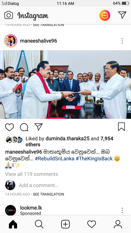 මේ කවුරුත් ආදරේ කරන කලාකරුවන් පිරිසක් තම මුහුණුපොතේ නව අගමැතිගේ පත්වීම ගැන තැබූ සටහන් කිහිපයක්…