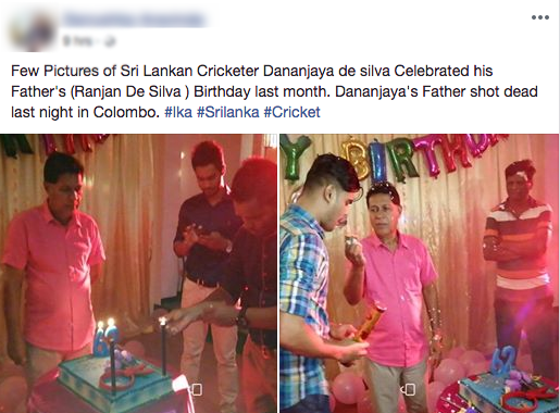 ශ්රී ලංකා ක්රිකට් කණ්ඩායම් ක්රීඩක ධනංජයද සිල්වාගේ පියා රංජන්ද සිල්වා මහතා වෙඩි තැබීමක් නිසා ජීවිතක්ෂයට පත්වුණා.