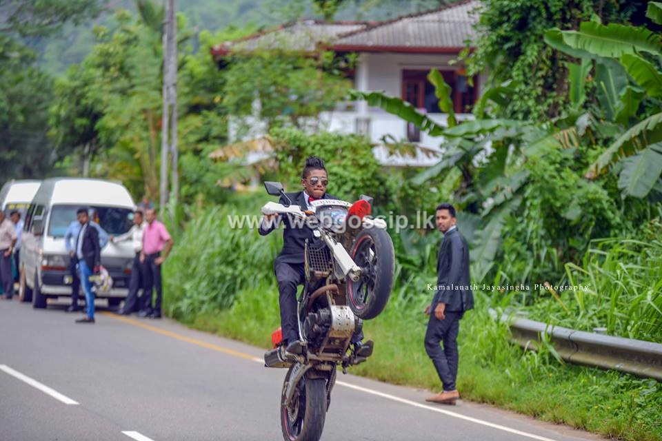 යතුරුපැදිවලින් ඒ විදිහට වැඩ දාන යාළුවෝ සෙට් එකත් මහ පාරේ වැඩ දාලා මනාලයාත් යතුරුපැදියකින් ගිය හැටි මේ ඡායාරුපවලින් දිස්වෙනවා.