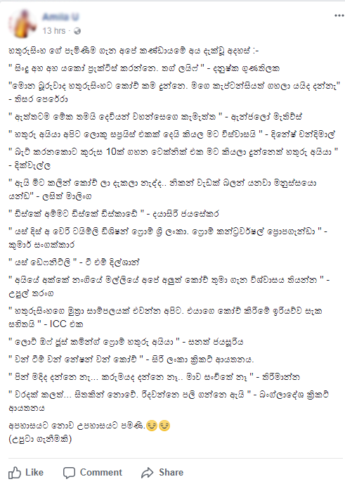අපේ ක්‍රීඩකයෝ හතුරුසිංහ ගැන හිතන හැටි ගැනයි එහි සඳහන්ව තිබුණේ..