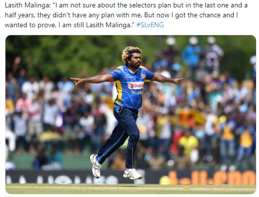 නමුත් තමාට දැන් අවස්ථාවක් ලැබී තිබෙන බව මාලිංග ට්විටර් පණිවුඩයක් නිකුත් කරමින් සඳහන් කර තිබෙනවා.