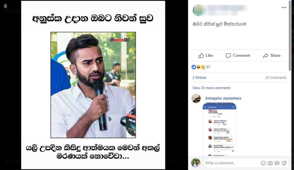 එම පුවතත් සමඟ ඇතමෙක් ඔහු මියගොස් ඇති බවට පවසමින් මුහුණුපොත පුරා Post හුවමාරු කරමින් සිටිනවා.