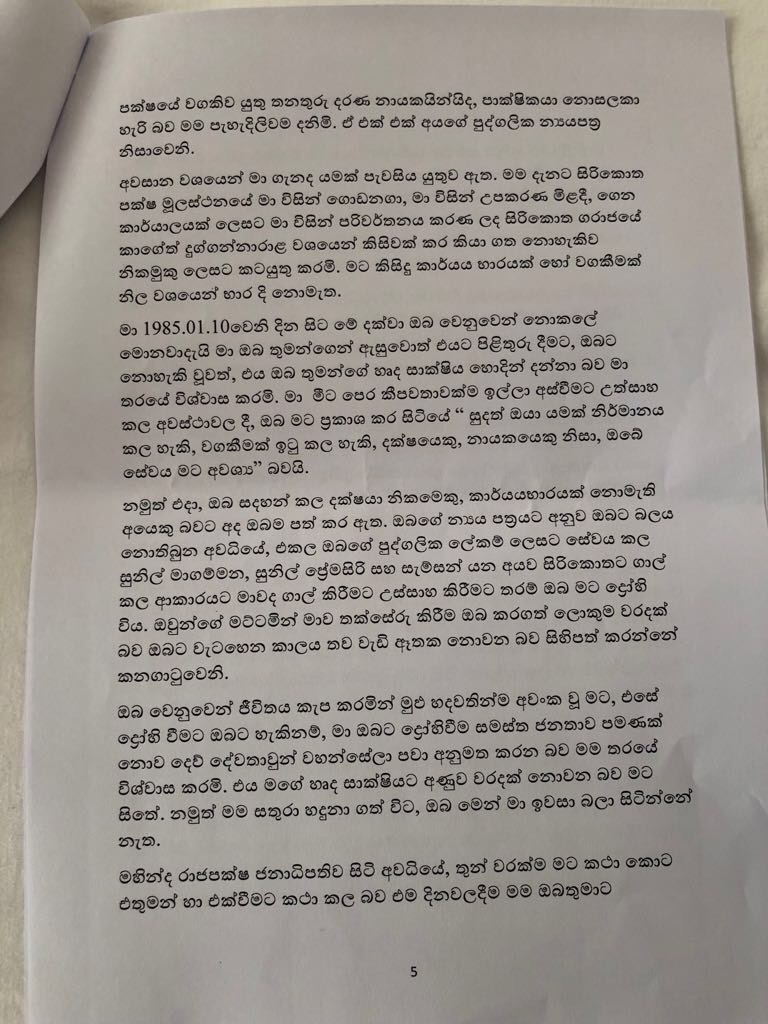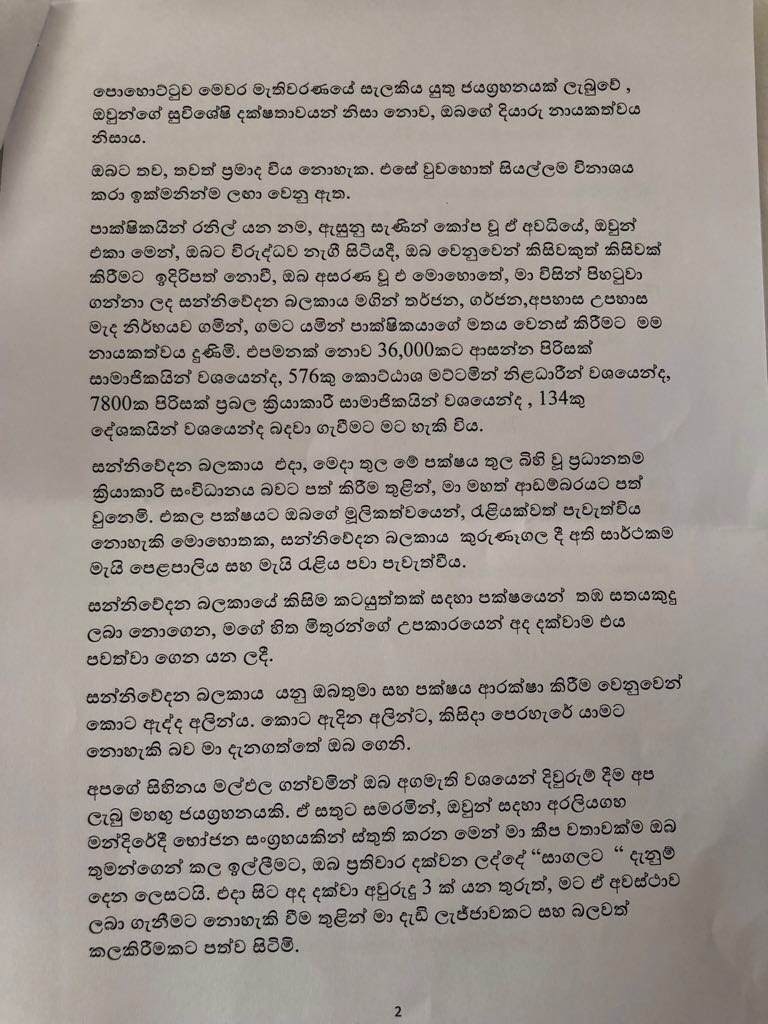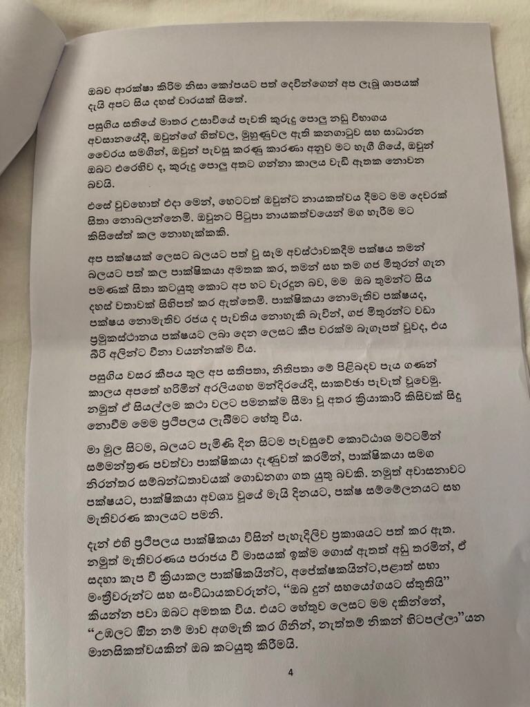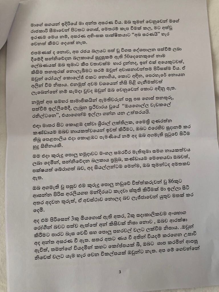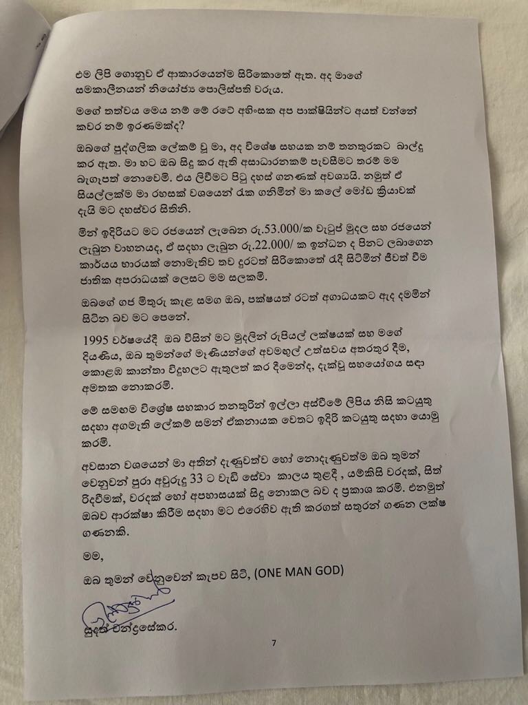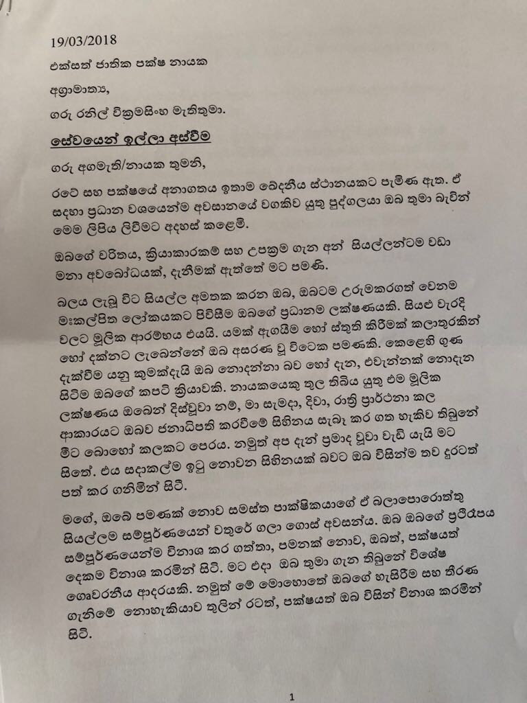 අග්රාමාත්යවරයාගේ පෞද්ගලික ලේකම්වරයාගේ අස්වීමේ ලිපිය පහතින්…