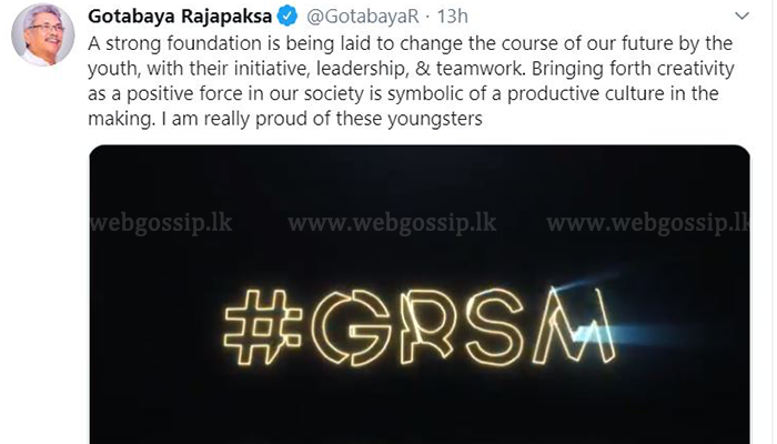 විශේෂ කරැණක් වෙන්නේ තරුණ තරුණියන්ගේ මෙම ක්රියාව ජනාධිපති ගෝඨාභය රාජපක්ෂ මහතාගේද ඇගයීමට ලක්ව තිබීමයි. ඒ අනුව ඒ සම්බන්ධයෙන් සිය ස්තූතිය පල කරමින් ජනාධිපතිවරයා ට්විටර් පණිවිඩයක්ද නිකුත් කර තිබුණා.