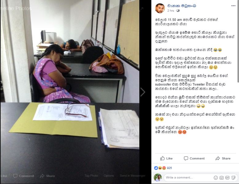 ඒ තමයි රජයේ ආයතනයක සේවය කරන අය වැඩ කරන වේලාවේදී නිදාසිටින අයුරු.